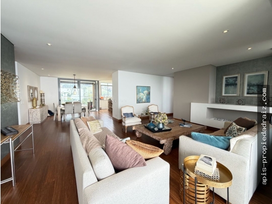 Apartamento con vista 180 grados, solo dos aptos por piso, muy exclusivo, altura piso techo 2.70, 3 habitaciones, biblioteca, sala de TV, cocina abierta, dos balcones, 4 parqueaderos y 2 cuartos útiles.